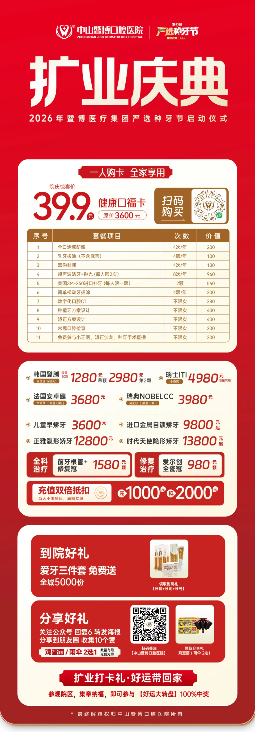 未来,中山暨博口腔医院将以此次升级为契机,持续深耕口腔医疗领域,不断优化诊疗服务流程,强化与各大品牌的深度合作,以更专业的医疗团队、更舒适的诊疗环境、更亲民的惠民政策,为中山及周边市民提供全周期的口腔健康服务。