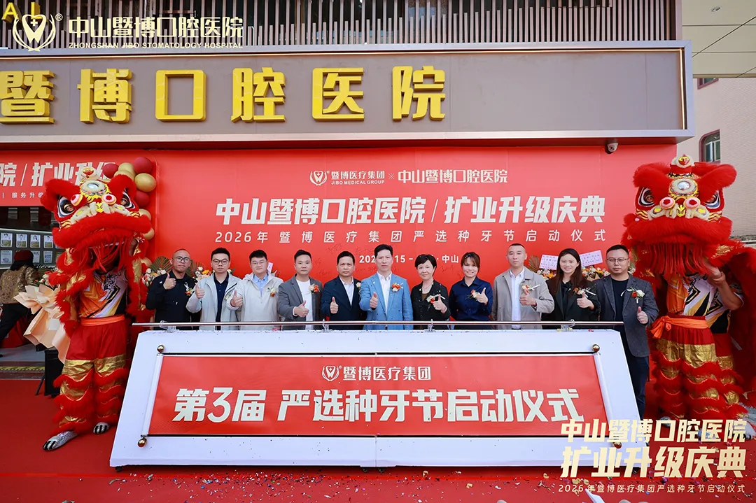 近日,中山暨博口腔医院扩业升级庆典暨2026年暨博医疗集团第三届严选种牙节启动仪式盛大举行,现场宾客云集、氛围热烈。
