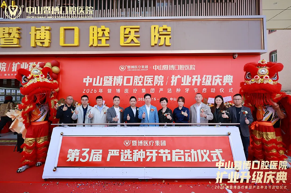 近日,中山暨博口腔医院扩业升级庆典暨2026年暨博医疗集团第三届严选种牙节启动仪式盛大举行,现场宾客云集、氛围热烈。此次活动不仅是医院发展历程中的重要里程碑,更是暨···